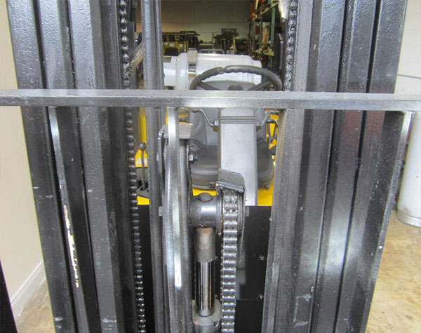 Este montacargas Yale 9 está en perfectas condiciones. ¡Todo en esta carretilla elevadora funciona muy bien! Esta carretilla elevadora está lista para su uso. Este montacargas tiene una capacidad de 5,000 libras. Este Yale 9 viene con un mástil triple, desplazamiento lateral y un año de garantía en el motor y la transmisión.